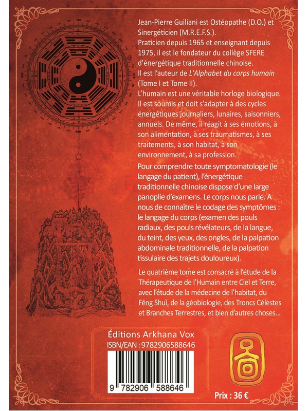 Jean-Pierre Guiliani est ostéopathe (D.O.) et sinergéticien (M.R.E.F.S.). Praticien depuis 1965 et enseignant depuis 1975, il est le fondateur du collège SFERE d’énergétique traditionnelle chinoise. Il est l’auteur de L’Alphabet du Corps Humain (Tome I et Tome II). L’humain est une véritable horloge