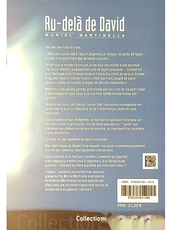 Ceci est une histoire vraie. J'étais une journaliste à l'esprit pragmatique lorsque j'ai perdu de façon brutale mon jeune frère âgé de trente-cinq ans. Tandis que le monde s'écroulait, je me suis raccrochée à une annonce : Ina, jeune médium, proposait son aide de façon gracieuse... Contact fut pris.