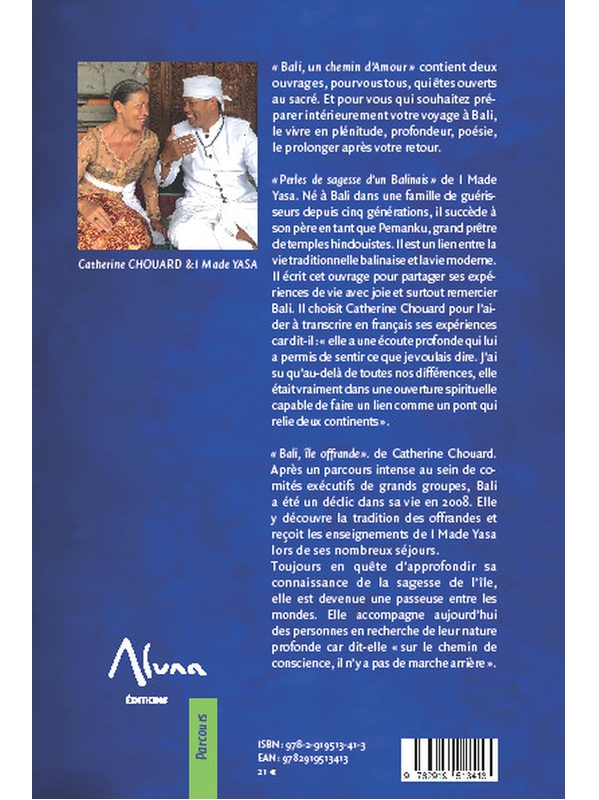 « Bali, un chemin d’Amour » contient deux ouvrages, pour vous tous, qui êtes ouverts au sacré. Et pour vous qui souhaitez préparer intérieurement votre voyage à Bali, le vivre en plénitude, profondeur, poésie, le prolonger après votre retour. « Perles de sagesse d’un balinais » de I Made Yasa. Né à Voir plus