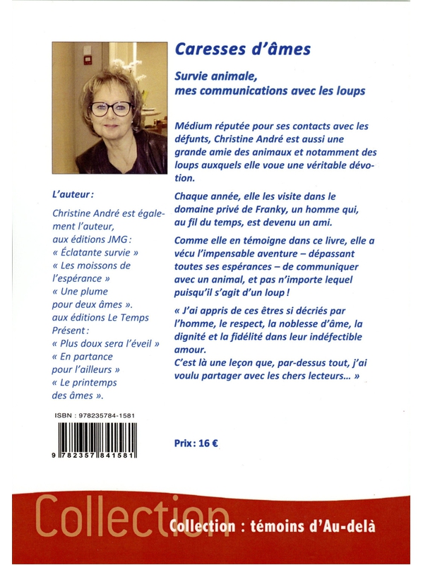 Médium réputée pour ses contacts avec les défunts, Christine André est aussi une grande amie des animaux et notamment des loups auxquels elle voue une véritable dévotion. Chaque année, elle les visite dans le zoo de Franky, un homme qui, au fil du temps, est devenu un ami. Comme elle en témoigne dan