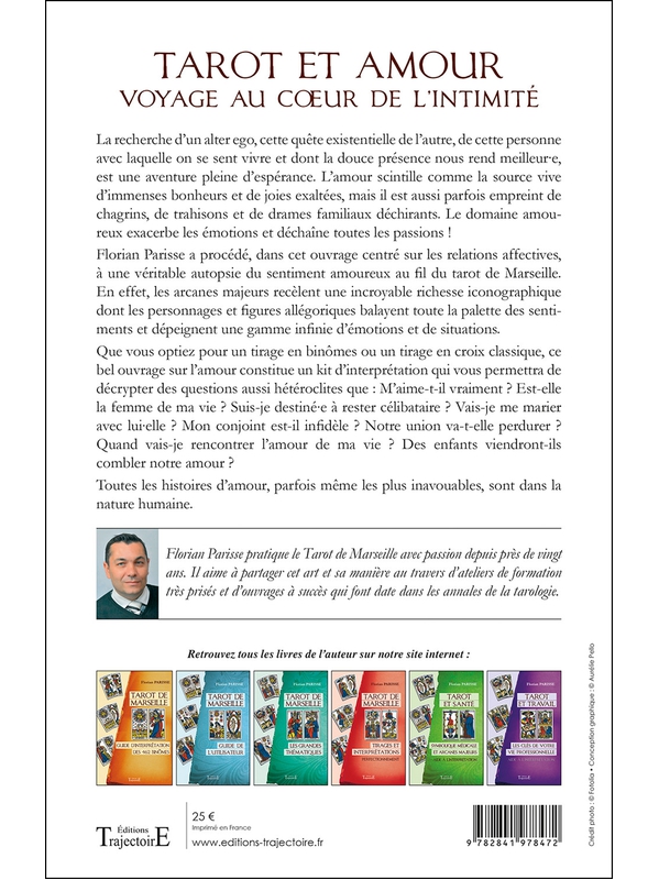 L'amour scintille comme la source vive d'immenses bonheurs et de joies exaltées, mais il est aussi parfois empreint de chagrins, de trahisons et de drames familiaux déchirants. Le domaine amoureux exacerbe les émotions et déchaîne toutes les passions ! Dans cet ouvrage centré sur les relations affectives, Florian Parisse a procédé à une véritable autopsie du sentiment amoureux au fil du tarot de Marseille. En effet, les arcanes majeurs recèlent une incroyable richesse iconographique dont les personnages et figures allégoriques balayent toute la palette des sentiments et dépeignent une gamme infinie d'émotions et de situations. Que vous optiez pour un tirage en binômes ou un tirage en croix classique, ce bel ouvrage sur l'amour vous permettra de décrypter des questions aussi hétéroclites que : M'aime-t-il vraiment ? Est-elle la femme de ma vie ? Des enfants viendront-ils combler notre amour ? Mon conjoint est-il infidèle ? Toutes les histoires d'amour, parfois même les plus inavouables, sont dans la nature humaine.Parisse Florian Voir moins