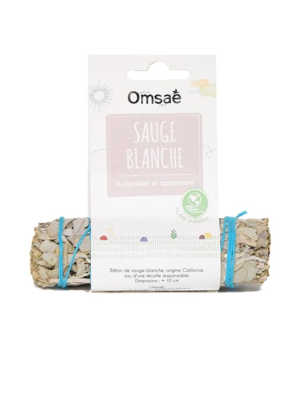 Bâton de sauge blanche utilisé pour éloigner les énergies négatives et se relaxer grâce à ses propriétés purifiantes et apaisantes.