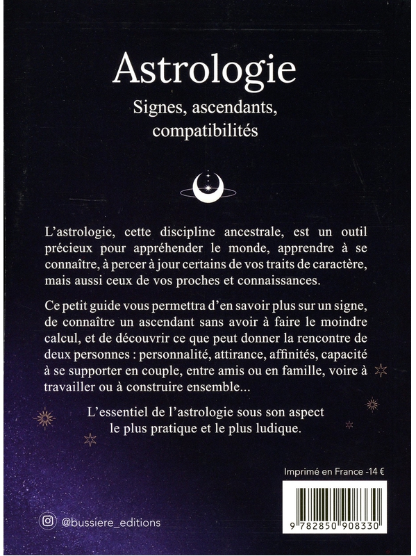 L’astrologie a toujours fait partie de notre histoire socio-culturelle. Elle est une discipline ancestrale et un outil précieux pour appréhender le monde et apprendre à se connaître. Ce petit guide vous permettra de vous initier et d’en savoir plus sur votre signe et votre ascendant, ainsi que ceux de vos proches. Traits de caractère, aptitudes, combinaisons, attirance et affinités entre les signes… L'essentiel de l’astrologie vous est ici dévoilé.Souvay Liliane Voir moins