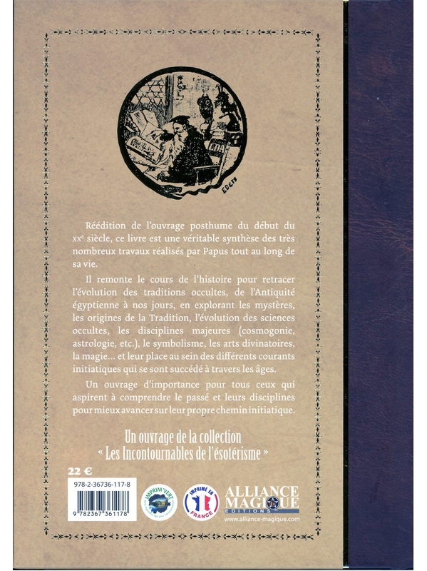 Réédition de cet ouvrage posthume du début du 20ème siècle, ce livre est une véritable synthèse des très nombreux travaux réalisés par Papus tout au long de sa vie. Il remonte le cours de l'histoire pour retracer l'évolution des traditions occultes, de l'Antiquité égyptienne à nos jours, en explorant les mystères, les origines de la Tradition, l'évolution des sciences occultes, les disciplines majeures (cosmogonie, astrologie etc.), le symbolisme, les arts divinatoires, la magie... et leur place au sein des différents courants initiatiques qui se sont succédés à travers les âges. Un ouvrage d'importance pour tous ceux qui aspirent à comprendre le passé et leurs disciplines pour mieux avancer sur leur propre chemin initiatique. A propos de l'auteur : Né le 13 juillet 1865 d'un père français et d'une mère espagnole, Gérard Encausse, dit Papus, passe sa jeunesse à Paris où il est reçu docteur en médecine en juillet 1894. Avant même de terminer ses études, il se donne pour tâche de lutter contre le scientisme de l'époque en diffusant une doctrine synthétisant divers aspects de l'ésotérisme occidental d'alors. Cofondateur de l'Ordre Martiniste, il a été une des figures pittoresques et hautes en couleur de la Belle Epoque.Papus Voir moins