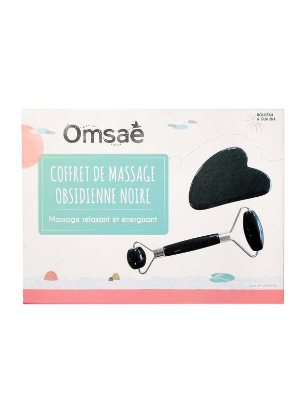 Coffret de massage composé d'un rouleau finition argentée et d'un gua sha en pierre naturelle d'obsidienne noire. Hérités des rituels de soin et de beauté chinois traditionnels, ce rouleau et ce gua sha permettent d'améliorer l'apparence de la peau et de se libérer des tensions par un massage alliant douceur et tonicité. Le rouleau est doté de deux pierres de tailles différentes, idéales pour masser toutes les zones du visage. Le gua sha viendra sculpter et lifter les traits grâce à sa forme spécifique, pensée pour épouser les lignes du visage. L'obsidienne noire, connue pour ses vertus énergisantes, viendra renforcer les bienfaits du massage.