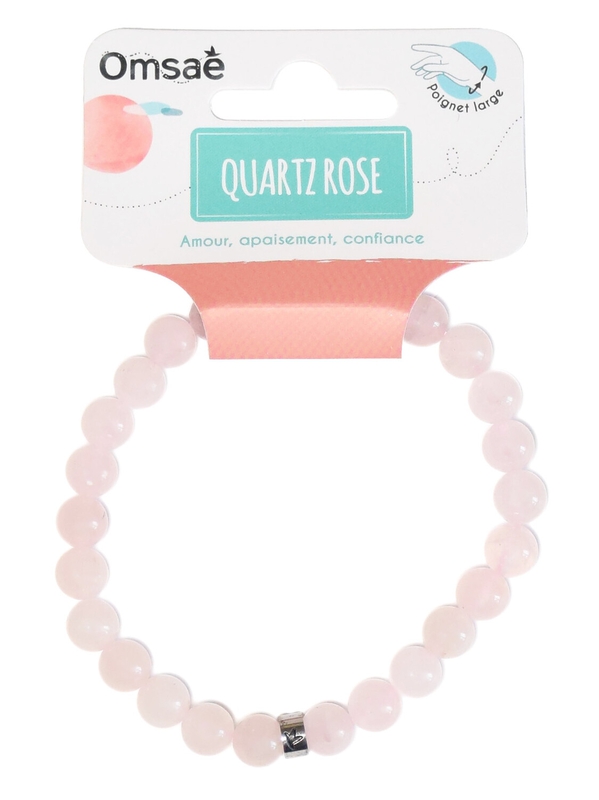Bracelet en perles rondes de quartz rose 8 mm pour poignet large Omsaé