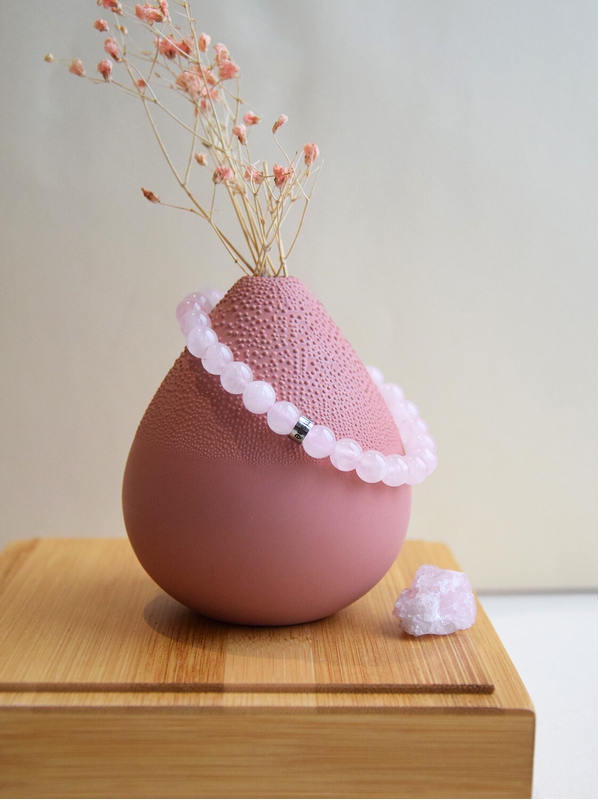 Bracelet élastique composé de perles en pierre naturelle de quartz rose. Le quartz rose symbolise l'amour de soi et des autres. Il apaise
