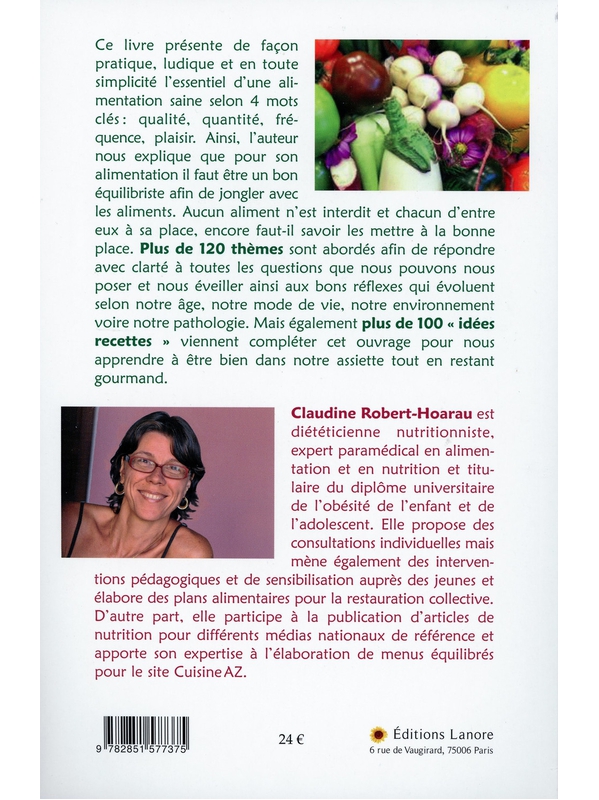 Ce livre vous présente de façon pratique, ludique et en toute simplicité l'essentiel d'une alimentation saine en 4 mots clés : qualité, quantité, fréquence, plaisir. Ainsi, l'auteur nous explique que pour son alimentation il faut être un bon équilibriste afin de jongler avec les aliments. Aucun alim Voir plus