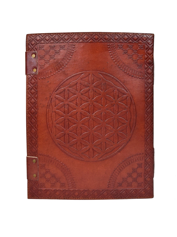 Grimoire en cuir Acajou Fleur de Vie Grand Format