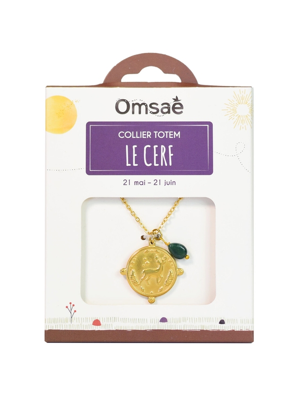 Ce collier, né de l'astrologie chamanique amérindienne, incarne l'esprit du Cerf, l'animal totem qui vous représente et vous protège si vous êtes né entre le 21 mai et le 21 juin. Doté d'une grande sensibilité et d'une intuition fine, le Cerf vous aidera à protéger vos proches et vous-même, tout en faisant face aux défis avec élégance. Pierre d'équilibre, l'agate mousse, vous permettra de vous connecter aux énergies naturelles qui vous entourent. Portez-le pour bénéficier de l'énergie douce et protectrice du Cerf.