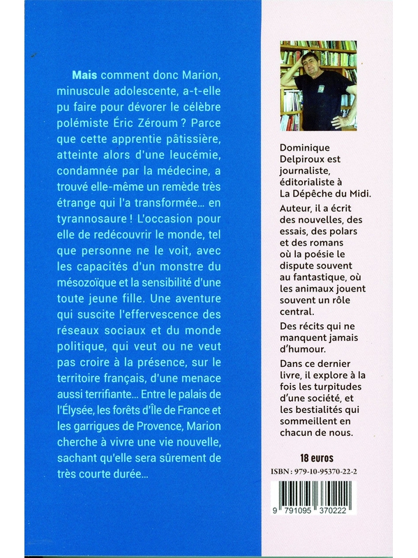 Marion est une adolescente très discrète qui rêve de devenir pâtissière. Mais une leucémie féroce la condamne. Lors d’une « permission de sortie » de l’hôpital, en désespoir de cause, elle s’injecte une étrange substance, fruit d’une récolte de restes de dinosaure au Pôle Sud…Petit à petit, la jeune fille toute menue se transforme en un terrifiant tyrannosaure. Les réseaux sociaux déroulent en boucle une visite du dinosaure au Muséum d’Histoire Naturelle, en plein Paris. Vrai animal ? Robot articulé ? Image virtuelle ? L’Elysée réunit une cellule de crise. Les journaux enquêtent. Les commentaires fusent. Marion visite une France vue par le petit bout de la lorgnette, avec ses misères et ses horreurs. L’aventure de Marion s’accélère. Va-t-on découvrir la vérité ? Le monstre, dont on découvre peu à peu l’humanité, va-t-il dévorer d’autres humains ? Un coup de théâtre lui permettra d’échapper à la voracité des médias. Narré avec poésie et humour, ce « road movie » dinosaurien fait apparaître des personnages tantôt attachants, tantôt burlesques, tantôt cruels, autour de cette « chimère » qui, se désespère autant qu’elle savoure cette animalité qui la submerge. Elle découvre enfin, au-delà de son univers enfantin, un monde sans pitié et brutal, dans le virtuel comme dans le réel.Delpiroux Dominique Voir moins