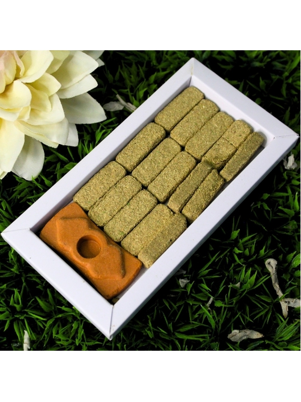 Ingrédients 100% naturels. Emballage écologique. Contient un support en terre cuite pour une utilisation facile et sûre. Chaque boîte contient 15 briques de fumigation.
