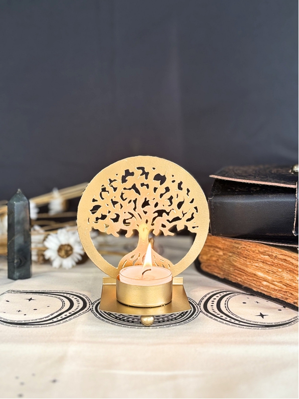 Élevez votre espace avec ce bougeoir en métal orné de l'arbre de vie. Ce symbole apporte une touche de sagesse et de connexion spirituelle tout en offrant une base stable pour vos b Voir plus