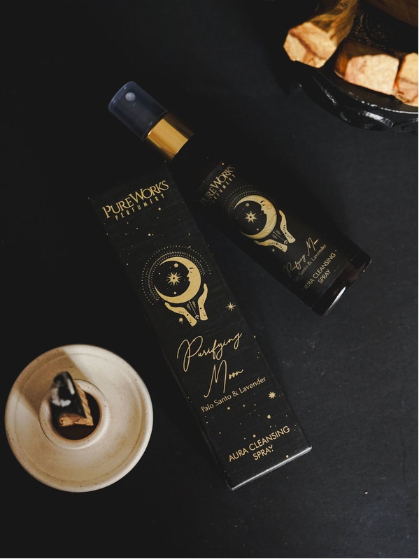 Plongez votre intérieur dans une ambiance de calme et de purification avec le Parfum d'Ambiance Purifiant Purifying Moon. Ce spray associe la richesse boisée du palo santo, connu pour ses vertus purifiantes, à la douceur florale de la lavande, idéale pour apaiser l’esprit et détendre l’atmosphère. Utilisez-le pour purifier votre espace et inviter à la sérénité. À chaque vaporisation, le palo santo libère ses notes sacrées et enveloppantes, tandis que la lavande diffuse une touche relaxante et réconfortante. Une combinaison parfaite pour favoriser la relaxation, la méditation ou simplement apaiser les énergies de votre quotidien. Un parfum purifiant et apaisant, pensé pour harmoniser votre intérieur grâce à l'énergie de la Lune.