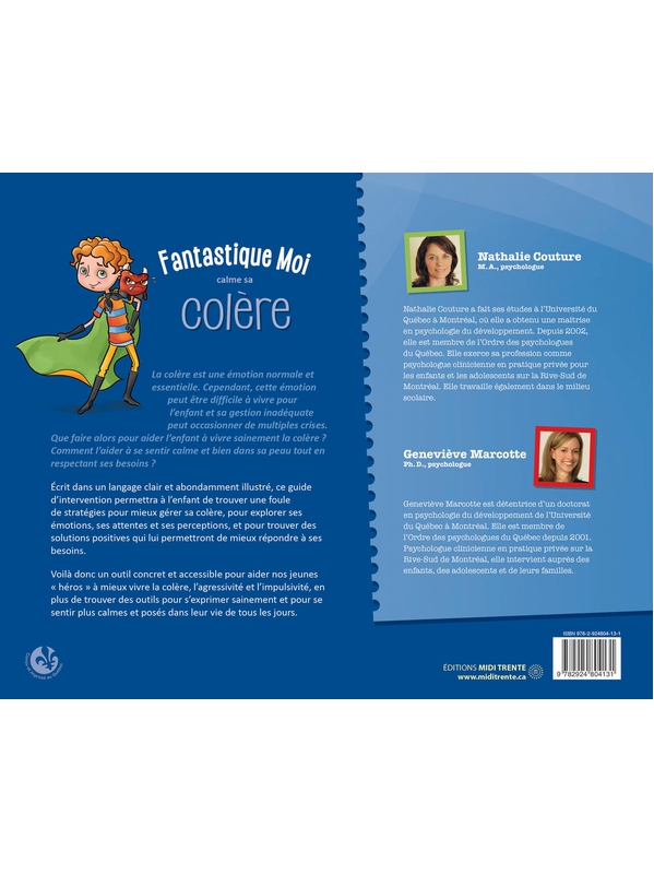 La colère est une émotion normale et essentielle. Elle constitue un mécanisme d’adaptation utile pour se défendre et pour survivre. Elle a toujours existé ! Cependant, la gestion de la colère chez l’enfant peut être difficile, et peut même devenir problématique et occasionner de multiples crises inappropriées. Que faire alors pour aider l’enfant à vivre cette émotion de manière saine ? Comment l’aider à se sentir calme et bien dans sa peau tout en respectant ses besoins ? Écrit dans un langage clair et abondamment illustré, ce guide d’intervention permettra à l’enfant de 6 ans et plus de trouver une foule de stratégies pour mieux gérer sa colère, pour explorer ses émotions, ses attentes et ses perceptions, et pour trouver des solutions positives qui lui permettront de mieux répondre à ses besoins. Voilà donc un outil pratique et accessible pour aider nos jeunes « héros » à mieux vivre la colère, l’agressivité et l’impulsivité, en plus de trouver des outils pour s’exprimer sainement et pour se sentir plus calmes et posés dans leur vie de tous les jours.Couture Nathalie,Marcotte Geneviève Voir moins