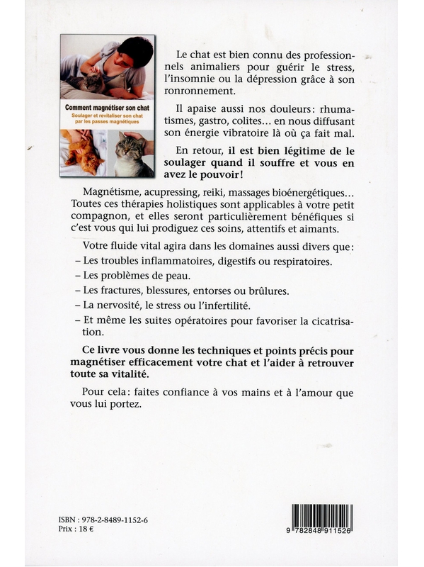 Le chat est bien connu des professionnels animaliers pour guérir le stress, l'insomnie ou la dépression grâce à son ronronnement. Il apaise aussi nos douleurs : rhumatismes, gastro, colites... en nous diffusant son énergie vibratoire là où ça fait mal. En retour, il est bien légitime de le soulager Voir plus