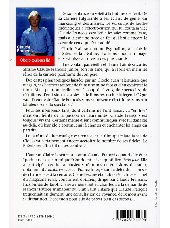 De son enfance au soleil à la brûlure de l’exil. De sa carrière fulgurante à ses éclairs de génie, du marketing et des affaires. De ses coups de foudre médiatiques à l’électrocution qui lui coûta la vie : Claude François s’est brûlé les ailes comme Icare, mais a laissé une trace de feu qui brûle encore le cœur de ceux qui l’ont adulé. Cloclo était son propre Pygmalion, à la fois le créateur et la créature, il a transcendé son image et s’est hissé au niveau des plus grands. Il ne voulait pas vieillir et il aurait aimé sa sortie, affirme Claude François Junior, son fils aîné, qui a repris en main les rênes de la carrière posthume de son père. Des dettes pharaoniques laissées par un Cloclo aussi talentueux que mégalo, ses héritiers tentent de faire une mine d’or et d’en exploiter le filon. Mais peut-on réellement à coup de livres, de spectacles, de rééditions, d’émissions de sosies et de films ressusciter la légende ? Que vaut l’oeuvre de Claude François sans sa présence électrique, sans son fabuleux sens du spectacle ? Pour ses nombreux fans, dont certains ne l’ont jamais vu “en live” mais ont hérité de la passion de leurs aînés, Claude François est toujours vivant. Certains même disent communiquer avec lui dans cet au-delà, où leur idole continuerait à chanter et enchanter les anges du paradis. Le parfum de la nostalgie est tenace, et le film qui relate la vie de Cloclo va certainement encore accroître le nombre de ses fidèles. Le Phénix renaîtra-t-il de ses cendres ?Lescure Claire Voir moins
