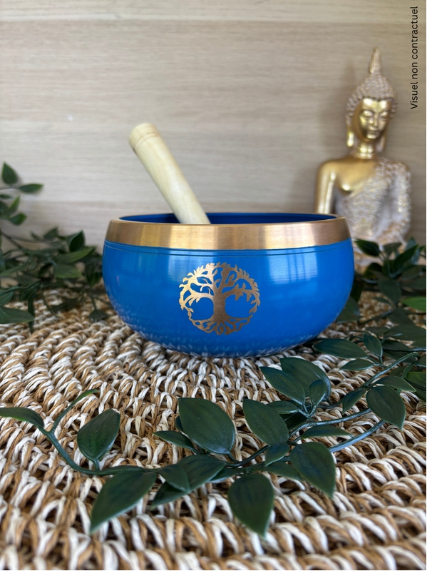 Plongez dans une parenthèse de sérénité avec ce bol chantant en laiton, sublimé par un Arbre de Vie doré, symbole de force, d'équilibre et de connexion entre les mondes