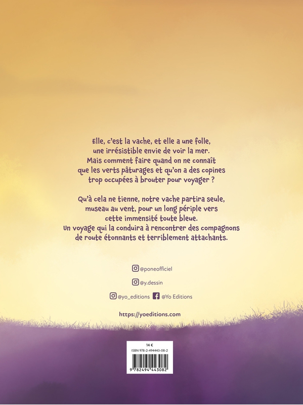 Elle, c'est la vache et elle a une folle, une irrésistible envie de voir la mer. Mais comment faire quand on ne connaît que les verts pâturages et qu'on a des copines trop occupées à brouter pour voyager ? Qu'à cela ne tienne, notre vache partira seule. Museau au vent, elle entreprend un long péripl