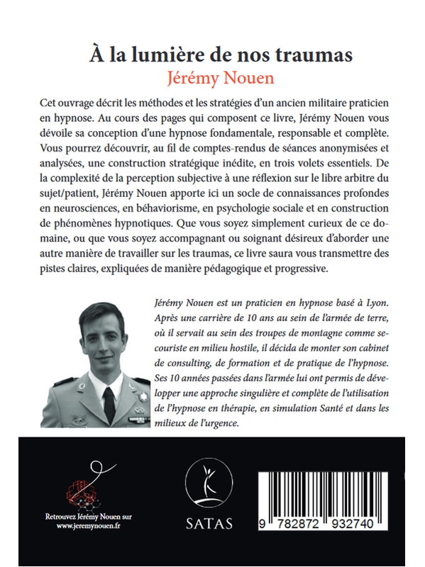 Jérémy Nouen propose une approche unique du traitement de la blessure psychique par l'hypnose. L'auteur a travaillé dans le milieu militaire pendant près de 10 ans au sein d'une unité d'élite de l'armée française, en étant toujours en lien avec le Service de Santé des Armées. Pendant cette période, Voir plus