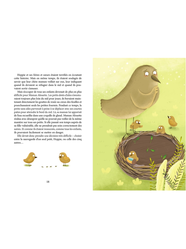Premier tome d’une série qui en compte six et qui racontent les aventures d’une petite alouette et ses compagnons de la forêt. Née sans ailes et avec des pattes trop courtes, elle est abandonnée par sa mère, contrainte de penser à ses autres oisillons. Hoppie est alors prise en charge par le sage hi Voir plus