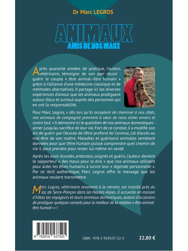 Après quarante années de pratique, l’auteur, vétérinaire, témoigne de son pari réussi : guérir le couple être animal - être humain grâce à l’alliance d’une médecine classique et de méthodes alternatives. Il partage ici les diverses expériences d’amour que les animaux prodiguent autour d’eux et surtout auprès des personnes qui en ont la responsabilité. Pour Marc Legros, dès lors qu’ils acceptent de cheminer à nos côtés, nos animaux de compagnie prennent à cœur de nous aimer envers et contre tout. Il démontre ici le quotidien de nos animaux domestiques : aimer jusqu’au sacrifice de leur vie. Fort de ce constat, il a modifié son art de guérir par l’écoute de l’être profond de l’animal, porte d’accès au mal-être de son maître. Maladies et guérisons animales semblent données pour que l’être humain comprenne quel chemin de vie il peut prendre pour rester lui-même en santé. Après les avoir écoutés, entendus, soignés et guéris, l’auteur devient le rapporteur « des maux pour le dire » que nos animaux utilisent pour aider les humains à suivre leur « légende personnelle ». Par ce récit authentique, Marc Legros offre le message que les animaux veulent transmettre.Legros Marc Voir moins
