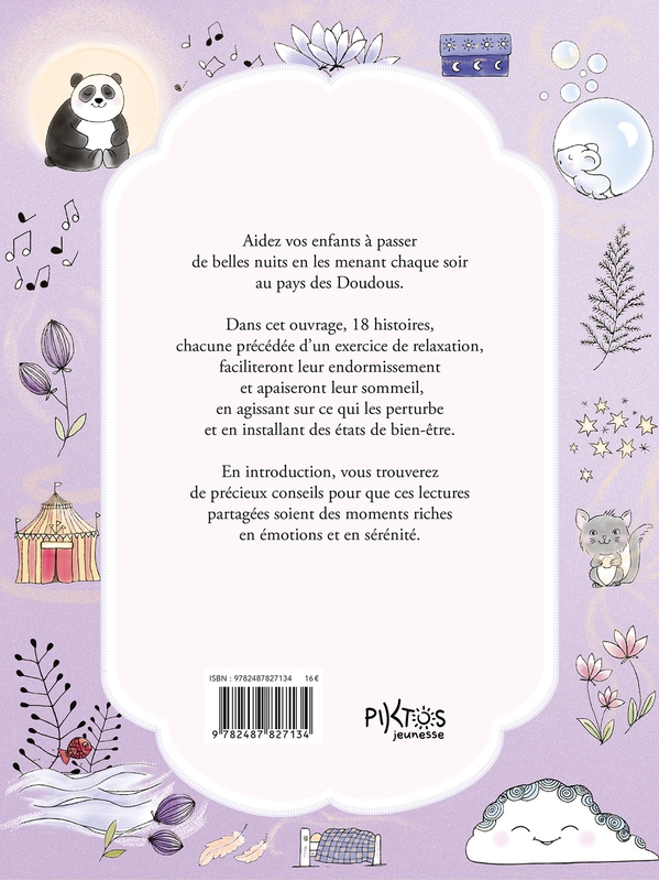 Conçue par une spécialiste du bien-être, cet ouvrage, propose 18 histoires à lire à son enfant pour l’amener à un sommeil apaisé et tranquille. Chaque histoire est précédée d’un exercice de relaxation pour une mise en condition propice à l’écoute puis l’endormissement. Au début de l’ouvrage, une mis Voir plus