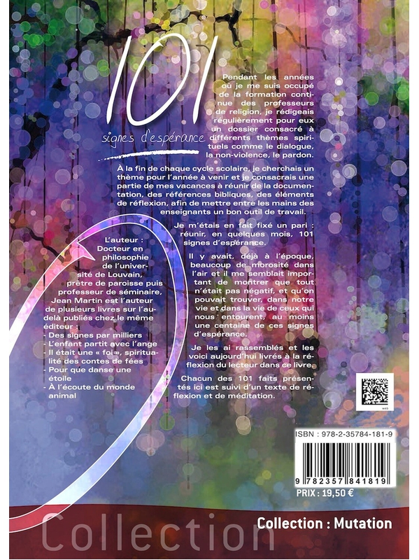 Dans 101 signes d’espérance, Jean Martin rassemble des récits authentiques, simples et profondément humains, collectés au fil de plusieurs décennies. L’ouvrage propose un voyage au plus près des gestes discrets, des petites victoires intérieures et des solidarités silencieuses qui illuminent nos vie
